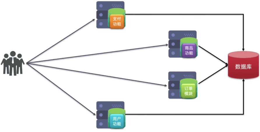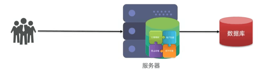 将业务的所有功能集中在一个项目中开发,打成一个包部署。