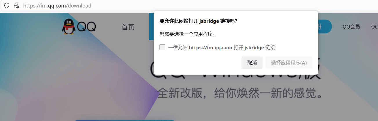 之所以会有这个弹窗,是因为火狐在 84 版本之后,为启动外部应用程序的协议链接增加了一个站点级别的权限。不过看起来貌似这个功能在 Kubuntu 有些问题,明明系统没有对应的程序去打开这个链接,每次手动点击了取消,下次刷新网页还是会弹窗。