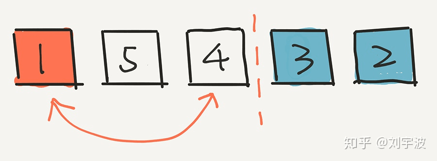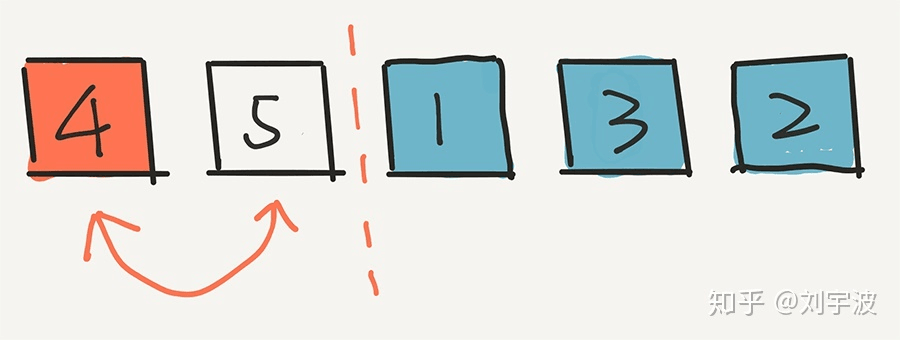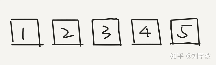 简单的只是用 5 个数字进行模拟。假设初始的时候,是按照 1,2,3,4,5 进行排列的。