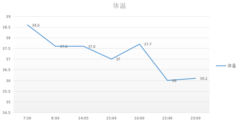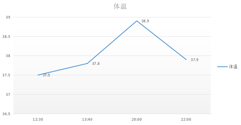 发热主要出现在 17 与 18 号。根据我量的体温,最高没有超过 39 度,不过也有可能那个最高点,我刚好没有量到。